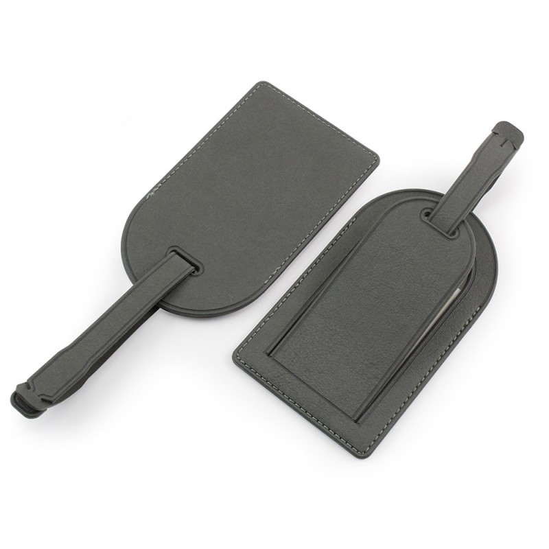 Etiquette à bagage doublée avec les bords repliés et cousus pour une finition de qualité.