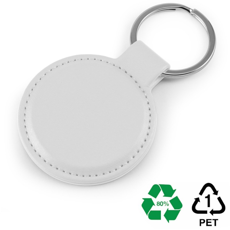 Porte-clé rond doublé avec les bords repliés et cousus pour une finition de qualité.