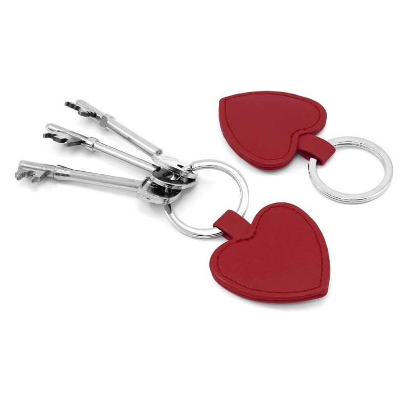 Porte-clé en forme de cœur doublé avec les bords repliés et cousus pour une finition de qualité.