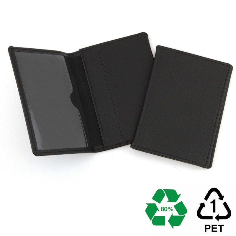 Porte-cartes avec 1 pochette intérieure en PVC pour une carte et une pochette avec un emplacement pour 2 cartes de crédit ou de visite.