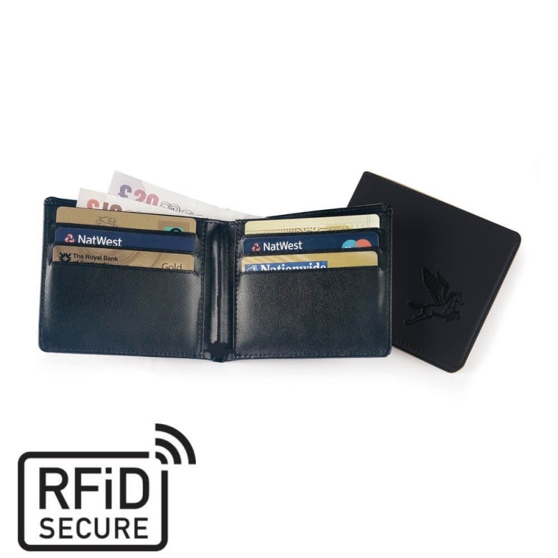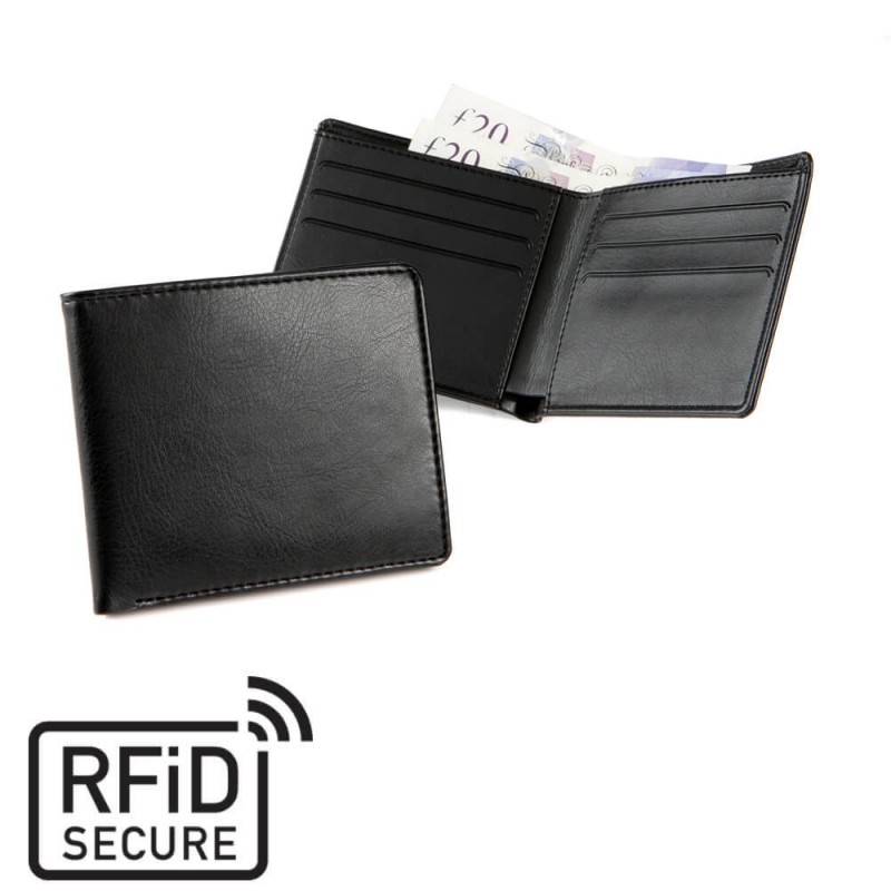 Portefeuille doublé anti-RFID avec les bords repliés et cousus pour une finition de qualité.