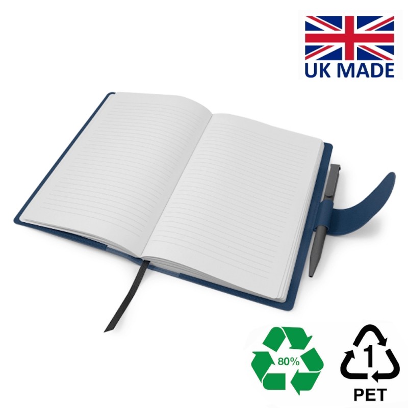 Simili rPET Como ou Porto: Composé à 80 % de PET recyclé, issu du recyclage de bouteilles en plastique et à 16 % de cellulose intissée, le simili rPET Como offre une texture subtilement grainée et le simili rPET Porto une texture lisse. Ces matières souples sont parfaites pour le marquage en creux ou l’impression numérique quadri.