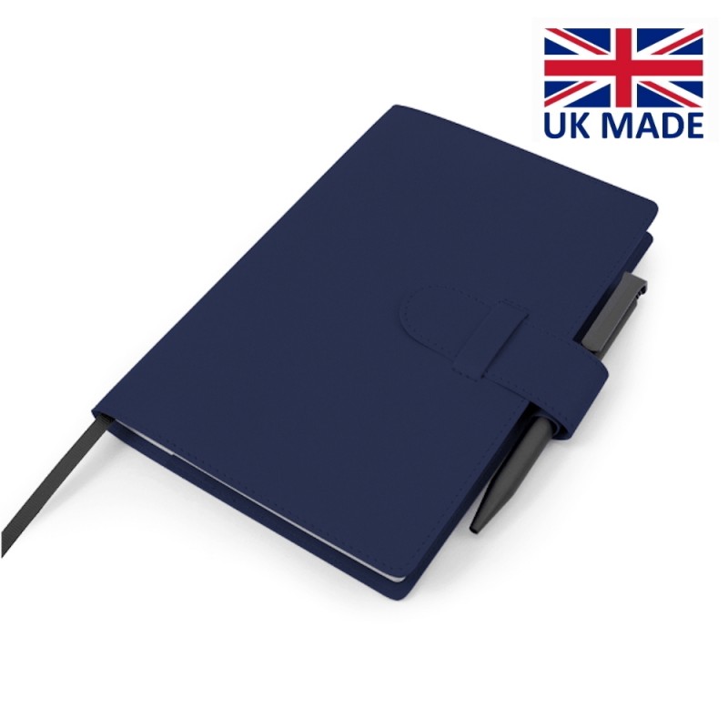 Fermeture par lanière et passant de stylo.