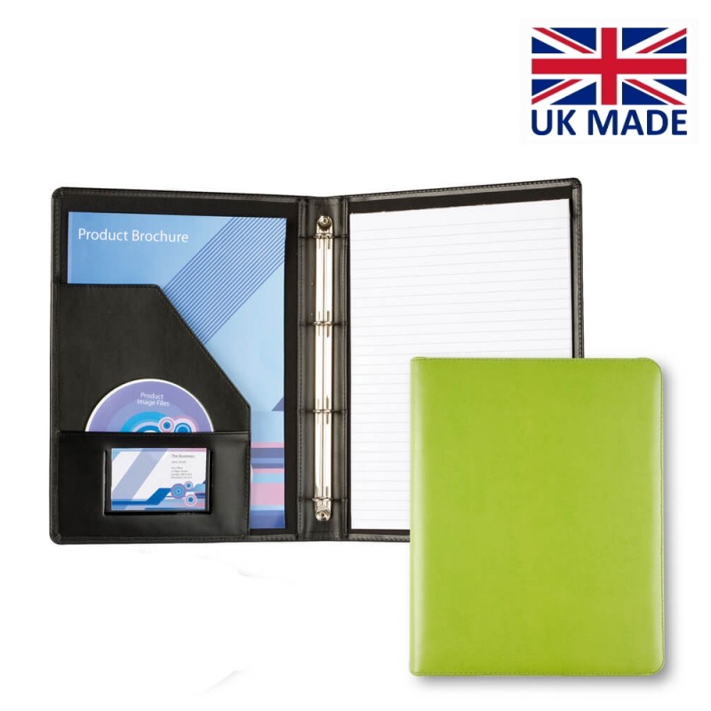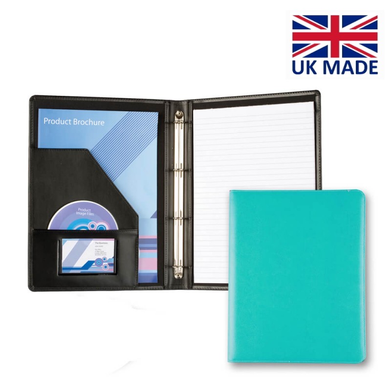 Conférencier A4 avec couverture légèrement rembourrée et cousue.