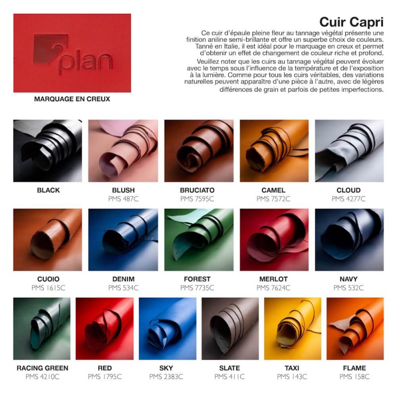 Cuir véritable: Pour des finitions ou coloris de cuir différents, nous vous proposons un stock large et varié de cuirs. Merci de nous préciser le coloris et le type de grain souhaité.